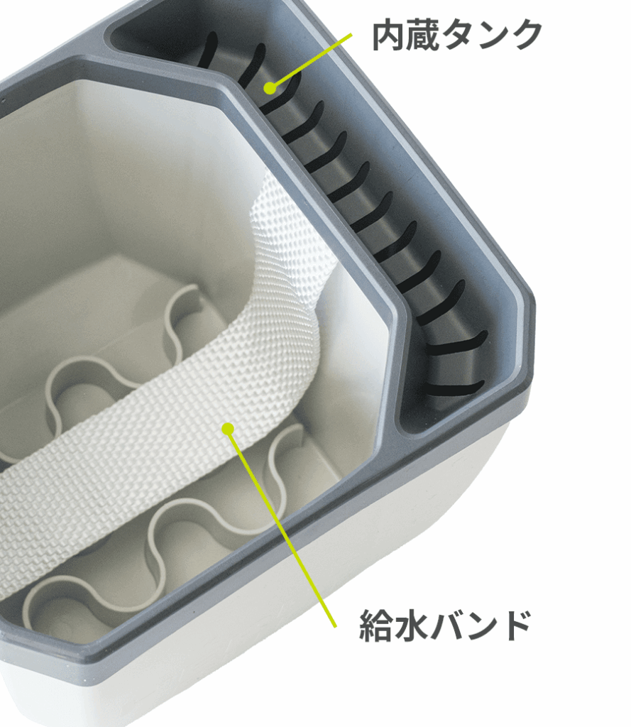 HERBS BUDDYは、内蔵タンクと給水バンドによる自動給水システムを採用しています。